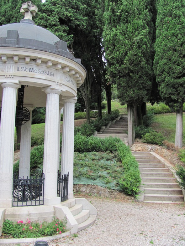 A közelben található Francesco Baracca síremléke is, akiről az elején szó volt. Ő volt az első világháború egyik legnagyobb pilótája, és valahol a környéken zuhant le élete utolsó bevetése után. A sír így néz ki: