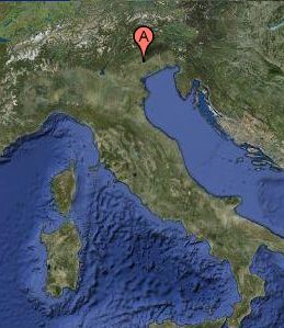 (Itt jobbra a kis térképen látszik [A betű], hogy hol járunk Észak-Itálián belül.)
