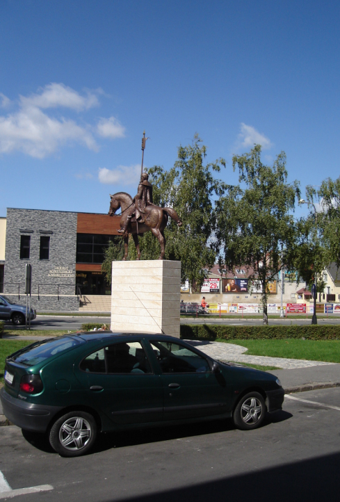 Ha mást nem, akkor annyit sikerült elérni szlovák oldalon, hogy a szobor rögtönzött zarándokhellyé váljon: ott jártunkkor kb. 25-30 percet töltöttünk el a térnek azon a részén, ezalatt négy kisebb magyar csoport fordult meg kocsival, fényképezte le magát, majd állt tovább sietve. Megállapítom, hogy a mű (Győrfi Lajos munkája - ld. még pl. a pesti srác szobra a Corvin közben) méltóságteljes, alapos munka (ugyan néhol a felületkezelése durva, darabos), számos rejtett szimbólummal. Például nyilván nem véletlen, hogy István a hármas halom-kettőskereszt jelképet hordozza a kezében tartott zászlón; ha már egyszer az történetileg nem stimmelhet (a kettős kereszt III. Béla korából, a hármas halom V. István korából ismert először), tippünk szerint annyit akar sugallni, hogy Istvánt akár lehet magyar-szlovák közös királynak is tekinteni, mint ahogy a két szimbólum mindkét állam címerében megvan. Bár nyújtózni kell hozzá, de az is észrevehető, hogy kardhüvelyt többek közt egy országalma is díszíti, valamint (ennek észrevételéhez már tényleg idő kell) a király palástját nyak-magasságban egy turult ábrázoló csat fogja össze. Utóbbihoz láthatóan a Karos-Eperjesszögi sír lelete szolgált mintául. Ezeket bírtuk észrevenni.