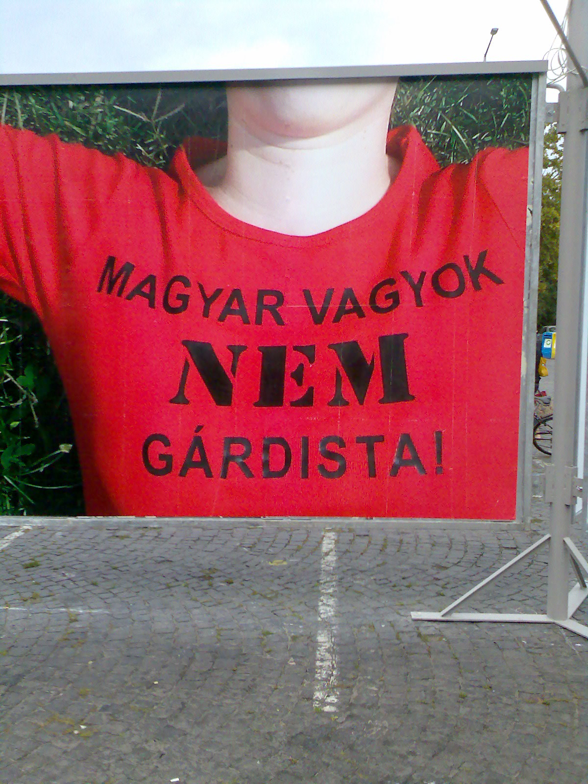 Kötelező kör, gárdázás. Rohadt unalmas, ötlet 0. Az üzenet is vitatható, mert miért ne lennének magyarok a gárdisták. Hülye vagy ÉS gárdista pólóban többet üzennél.